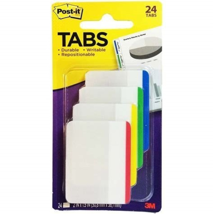 POST-IT Index rígido plano 2" 51x38mm para archivo verde/azul/amarill/rojo, 4x6un,sin dispensador