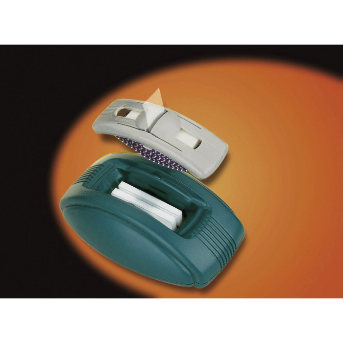 Dispensador verde para tiras de cinta adhesiva. Incluye 2 bloques de tiras mate.