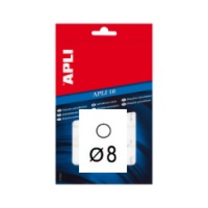 Etiqueta manual APLI círculo 8mm blanca 5h 480un. mini-bolsa, escritura manual