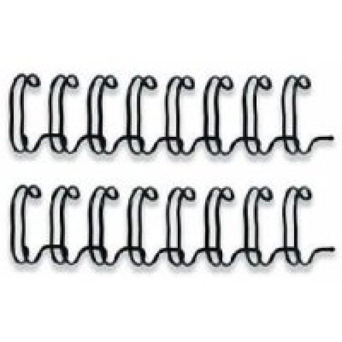Doble espiral metálico wire 14mm color negro. Pack de 100 Uds. Adecuado para encuadernadoras wire (doble espiral) de 34 anillas. Da a tus encuadernaciones un acabado con estilo, durabilidad y alta calidad. Permite una total apertura del documento, facilidad de leer y fotocopiar. Adecuado para encuadernar documentos de entre 101-120 hojas.
