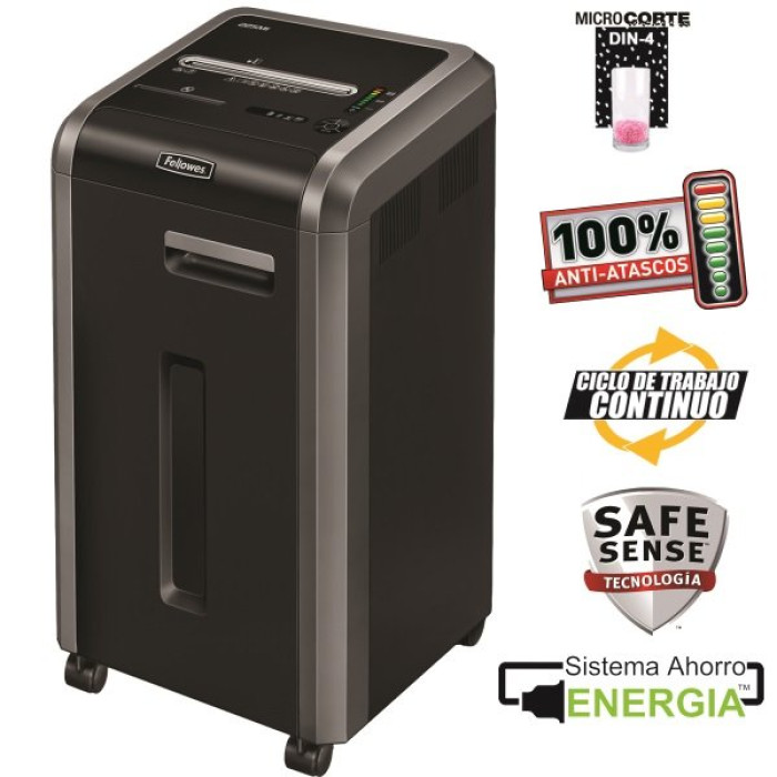 • Destruye hasta 10 veces más pequeñas las partículas que las destructoras de corte en partículas • Diseñada para Uso Continuo. +5 usuarios • Destruye hasta 16 hojas en micropartículas de 2x12 mm. (Nivel de seguridad P-5) • Sistema 100% anti-atasco que evita que se ponga en marcha la destructora si se introduce más papel del que admite • Ultra silenciosa para un buen ambiente de trabajo • Tecnología SafeSense de desconexión automática cuando la mano está demasiado cerca • Tiempo prolongado de funcionamiento que asegura que la destructora estará siempre para ser utilizada • Papelera de 60 litros, con capacidad de destrucción diaria para 3000 hojas • Destruye grapas, tarjetas de crédito y cds • 2 años de garantía en la máquina y 7 años de garantía en cuchillas de corte Destructora con nivel de seguridad de destrucción superior con Tecnología 100% anti-atasco
