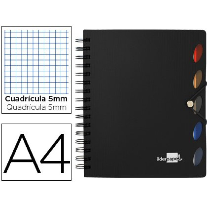Bloc espiral LIDERPAPEL A4 cuadricula 5mm micro ex 100 hojas 80gr. c/ separadores Negro