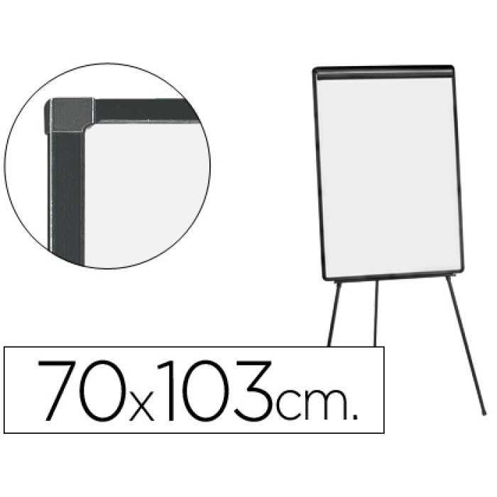 Pizarra Q-CONNECT blanca con tripode 70x103 cm. Superficie laminada, marco negro