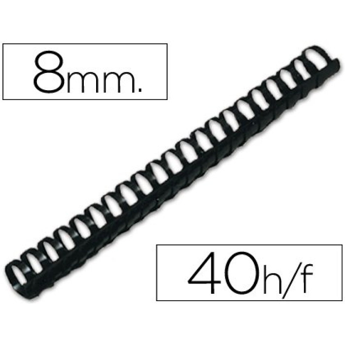 Canutillo q-connect redondo 8 mm plastico negro capacidad 40 hojas caja de 100 unidades. Redondos. Color negro.