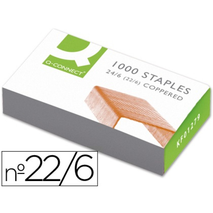 Caja 1000 grapas Q-CONNECT 22/6 - 24/6 cobreadas