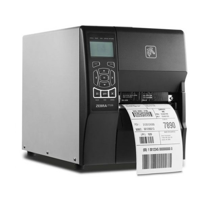 Impresora de etiquetas ZEBRA ZT230 Tecnología de impresión: transferencia térmica. Estructura y cubierta metálica. Resolución de impresión 203ppp. Ancho de impresión máximo: 104mm. Ancho de impresión mínimo: 19,4mm. Velocidad de impresión: 152mm / seg. Memoria estándar 128MB. Sensores de material por transparencia y por reflexión. Ancho máximo etiqueta y soporte: 114mm Ancho del material: de 19,4mm a 114mm. Longitud máxima no continua de la etiqueta: 991mm. Tamaño máximo de bobina del material: Diámetro externo 203mm sobre un mandril de 76mm (diámetro interno). Diámetro externo 152mm sobre un mandril de 25mm (diámetro interno). Grosor del material: 0,076mm a 0,25mm. Tipo de material: en continuo, troquelado y marca negra. Puerta para material de doble hoja, con gran ventana transparente. Carga lateral de consumibles para facilitar la carga de material y cinta. Element Energy Equalizer E3, para la mejor calidad de impresión. LEDs en 2 colores, para ver rápidamente el estado de la impresora. Interfaz gráfica de usuario LCD, multilingüe, basada en iconos y teclado con todas las funciones (ZT230). Puertos USB 2.0, serie RS-232 y conexión red Ethernet 10/100BaseT. Conexión WiFi. ZebraNet N Print Server.