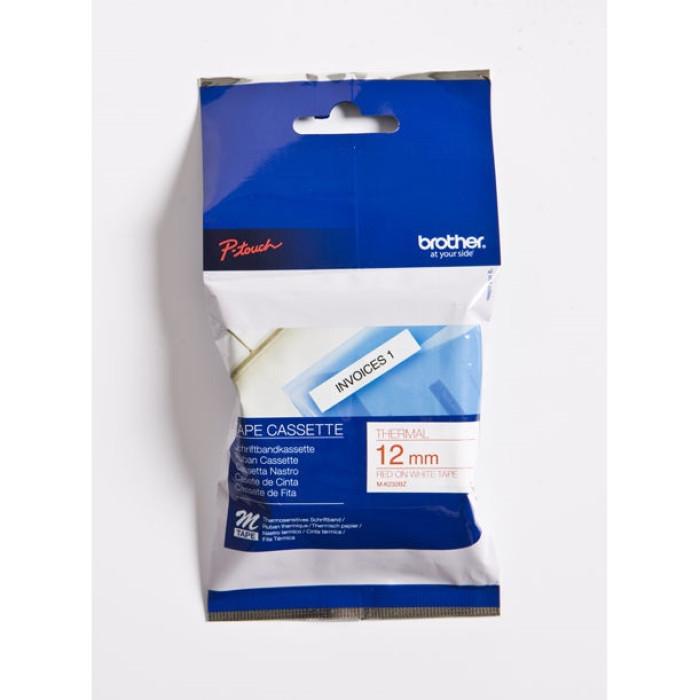 C.12mm BROTHER PT85/110 rojo sobre blanco cinta rotuladora no laminada, 8mts