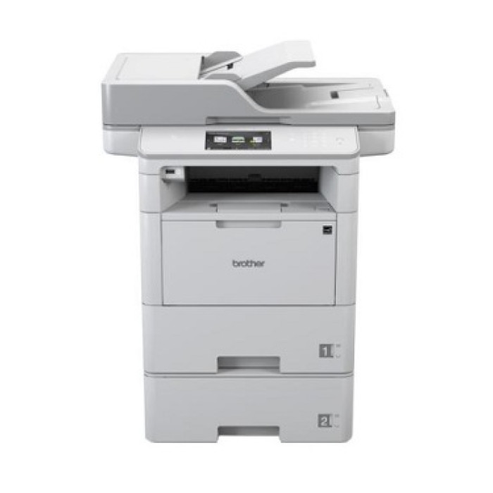 El DCP-L6600DWT es una impresora multifunción recomendada para usuarios que necesiten de servicios de impresión y copia en monocromo, hasta 7.500 páginas al mes, además de la función de escaneado. Funciones La velocidad de impresión y copia de hasta 46 páginas por minuto, memoria de 512MB, procesador de 800MHz y sus opciones de conexión a la red (cableada o inalámbrica) permiten que el equipo pueda ser compartido por varios usuarios sin atascos o esperas, contribuyendo para elevar la productividad de su entorno. Se puede imprimir mientras se copia o escanea para que no haya bajadas de productividad. Su escáner dual CIS permite escanear documentos a doble cara de una sola pasada, a una velocidad de 100 imágenes por minuto en monocromo y de 34 imágenes por minuto en color. Para ello cuenta con un Alimentador Automático de Documentos (ADF) de 80 hojas para que las funciones de escaneo y copia se hagan de forma rápida y sencilla. A través de su amplia pantalla táctil de 12.3 cm, se puede acceder a servicios en la nube, subiendo documentos escaneados a plataformas web o bajar documentos para impresión. Está también preparado para una utilización desde dispositivos móviles usando iPrint&Scan de Brother, o una de las distintas aplicaciones disponibles como Airprint, Google Cloud Print o Mopria. Ahorro Entre sus características para proporcionar un mayor ahorro, se destacan: Dúplex automático en todas las funciones, reduciendo el consumo de papel. Tóner de super larga duración disponible de 12.000 páginas (según ISO/ICE 19752), proporcionando un bajo coste por página y menos gastos logísticos El Bloqueo Seguro de Funciones 3.0 permite restringir el número de impresiones por usuario y/o hacer el seguimiento de cuanto lleva impreso cada uno, para poder tener un mayor control de los gastos de impresión. Seguridad Con modo de impresión segura que permite proteger los documentos que sean confidenciales, simplemente con la introducción de un código PIN en la impresora para que se impriman los trabajos. Dispone igualmente de lector NFC para autenticación del usuario. A través del Bloqueo Seguro de Funciones se puede restringir el número de funciones que cada usuario tiene acceso. Manejo de papel Dispone de dos bandejas de papel de 520 hojas y se puede añadir una más (de 250 o 520 hojas) para incrementar su capacidad de entrada de papel. Tiene también una bandeja multipropósito con capacidad para 50 hojas que permite trabajar con diferentes formatos de papel, como sean sobres, etiquetas o papeles más gruesos.