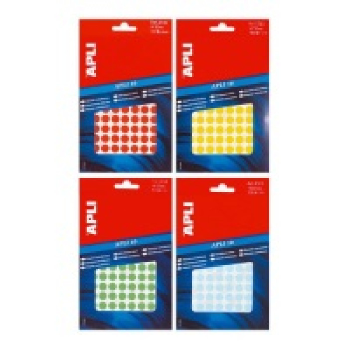 Etiq.APLI-8 círculos 10mm diámetro 1008un. 8h fondo amarillo escritura manual