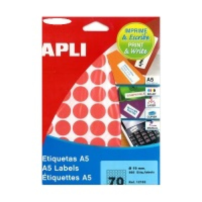 Etiq.APLI redonda roja 19mm 560 etiq.