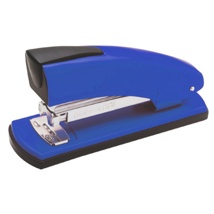 Grapadora petrus 2001p color -azul -capacidad 20 hojas. Metálica cromada. Longitud del grapado a 7,2 cm del borde de la hoja. Carga 2 peines (100 grapas) nº 22/6, 24/6 y 26/6. Con base plástica antideslizante. Con cargador doble guía antiatascos. Incorpora el grapado pgt (paper grip tecnology) para un grapado siempre perfecto. Longitud de la base: 135 mm. Medidas: 45 x 68 x 135 mm.