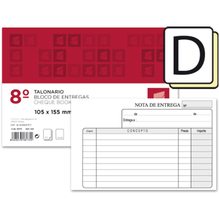 Talonario liderpapel entregas 8º original y copia t228 apaisado. Formato octavo apaisado (105 x 155 mm).