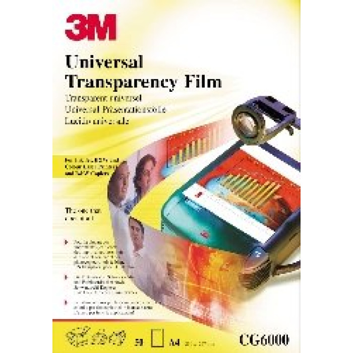 Transparencias 3M con banda de papel removible 50 hojas/caja multiusos