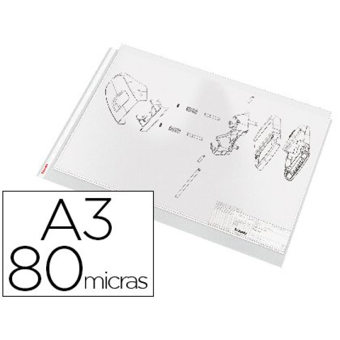 Funda multitaladro esselte din a3 80 mc polipropileno apertura superior pack de 10 unidades. Fabricada en polipropileno de 80 micras. Piel de naranja. Abertura superior. Multitaladro: 11 taladros. Con refuerzo. Copysafe: antiadherente. Formato a3 apaisado para planos y diseños. Bolsa de 10 unidades.