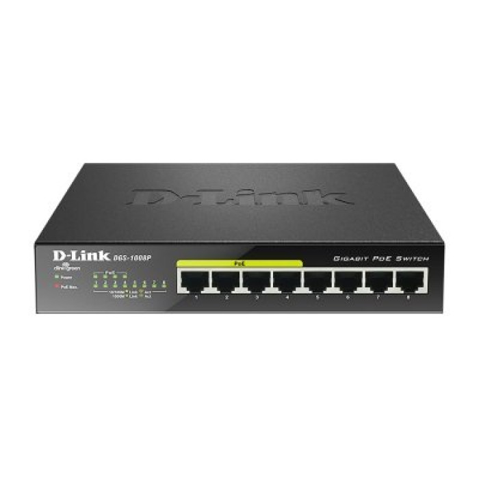 Switch D-LINK 8-puertos PoE (4p PoE + 4p normales) 10/100/1000Mbps no gestionable