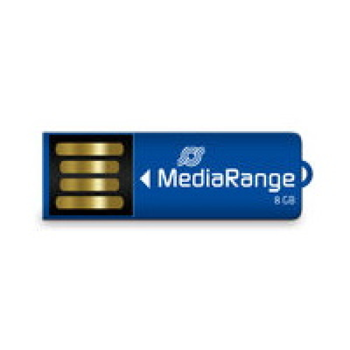 Las memorias USB flash drives de MEDIARANGE son de calidad y fiabilidad. Son ideales para intercambiar datos. Modelo paper-clip o nano: de dimensiones y peso reducido para llevarlo en cualquier lado, por ejemplo en su cartera o en su bolso. Capacidad: 8GB Conexión interfaz USB 2.0. Velocidad de lectura: hasta 14 MB/s Velocidad de escritura: hasta 4 MB/s Dimensiones: 36 x 12 x 4,4 mm Peso: 6g Color: azul.