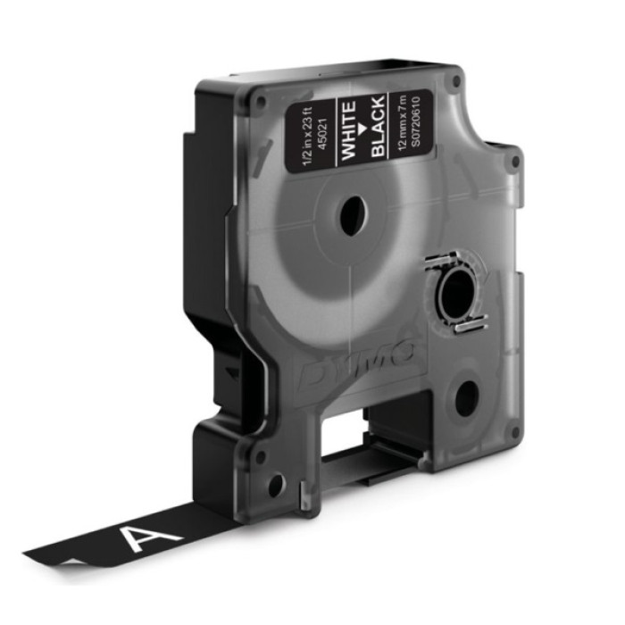 Label cassette DYMO D1 Standard 12mm x 7m. white on black (texto blanco/fondo negro)(45021)