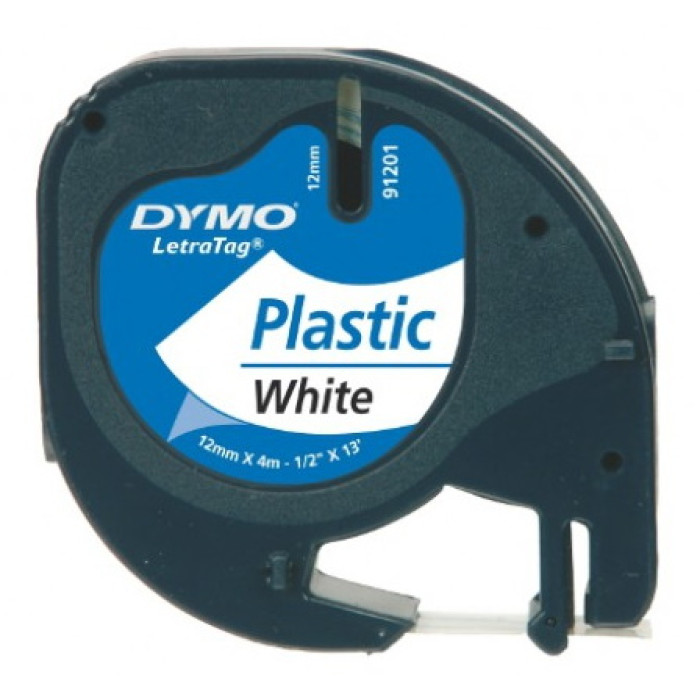 Label cassette DYMO D1 LetraTag Plastic 12mm x 4m. black on white (texto negro/fondo blanco)(91201)